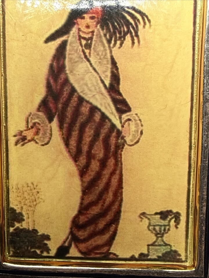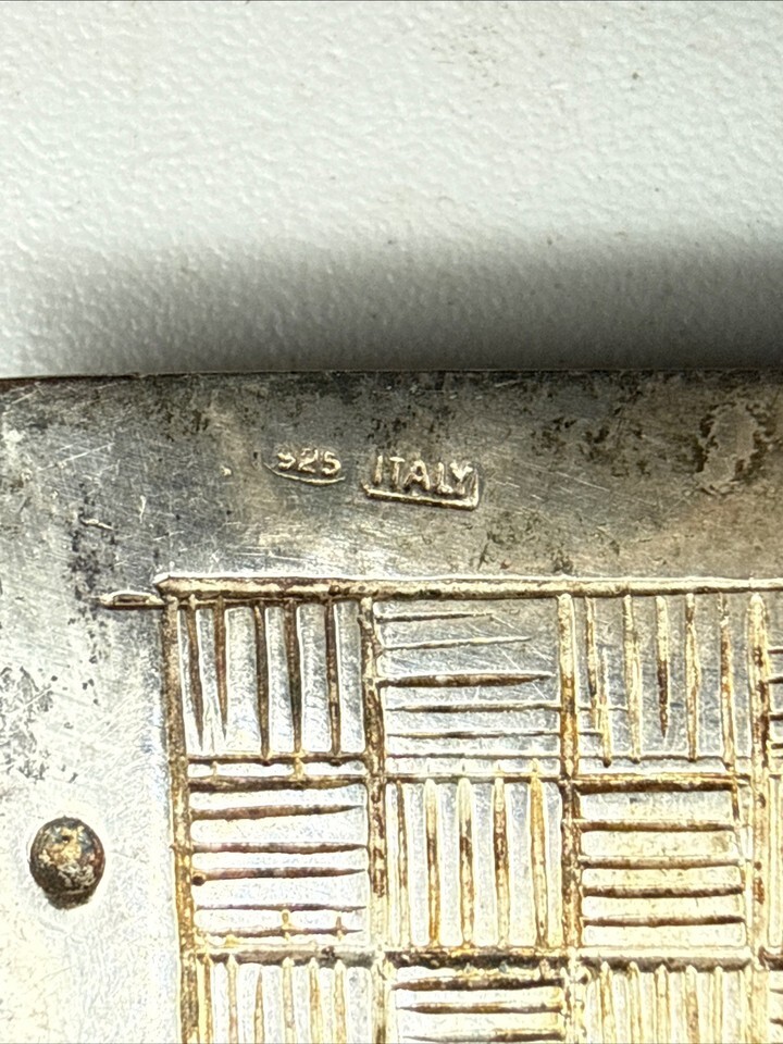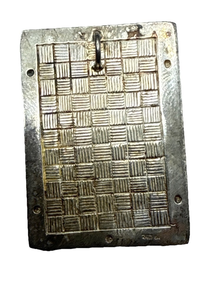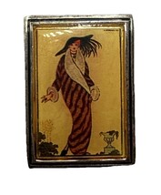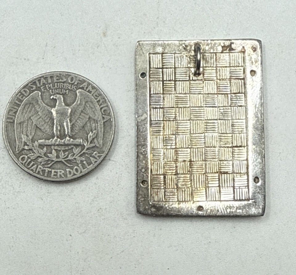 This pendant is a unique piece. It features the artwork of Georges Barbier?s Woman in Zibeline Coat with Cuff and Foxes set in a Sterling Silver frame under glass or resin. It is a unique and stylish piece of jewelry crafted in Italy stamped 925. The pendant weighs 11 grams.