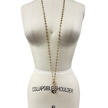 Gorgeous, signed Catherine Popesco France vintage Antiqued ( I found in researching that these are often 14K gold plate over a copper base) necklace with clear, high-quality crystals. The necklace is approximately 21 inches ( 42" total) long and has three charms?one tiny locket that opens for photos or other keepsakes, one black and gold enamel round, and a crystal-studded Maltese cross.A Victorian look and could pass for.... It does not have a clasp. This is one of the rarer Catherine Popesco finds, and the chain is unique. Excellent condition.