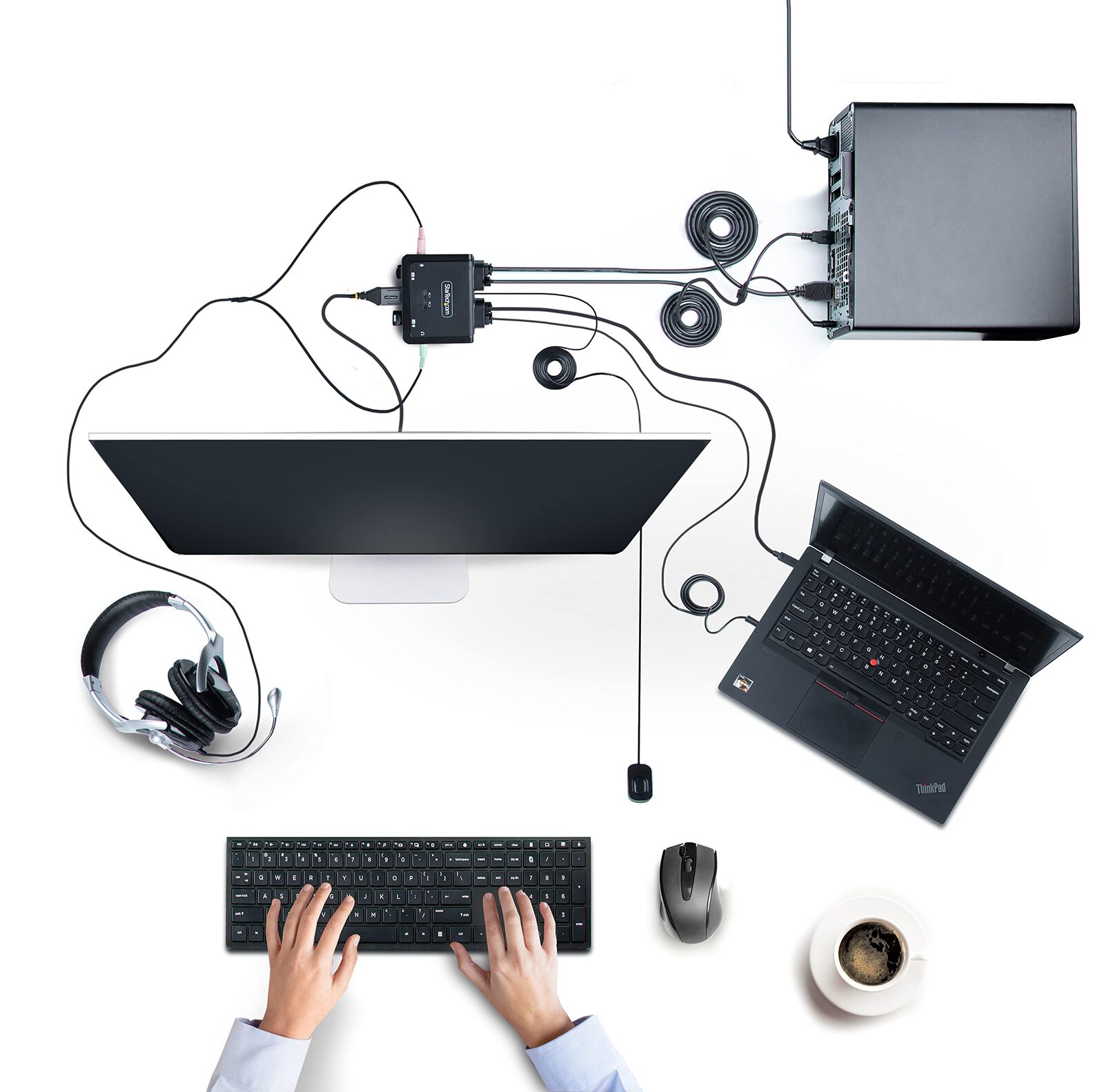 StarTech.com 2-Port Hybrid USB-C HDMI Cable KVM Switch, 4K 60Hz, Compact KVM wit