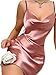Trendy TRON Women's Short Backless Satin Mini Dress, Pink, Spaghetti Strap, S-XL