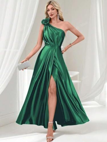Women's Maxi One-Shoulder Satin Gown, Royal and 50 similar items