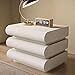 Product description: Elevate your bedroom with this modern Interoknack bedside table, featuring a distinctive rolled-edge drawer design that mimics the look of layered cushions. Measuring 19.7 x 15.7 x 19.7 inches, this nightstand combines luxury with functionality through its plush matte finish and soft, rounded edges that ensure safety and style. Available with either two or three spacious drawers, it offers ample storage for keeping your nighttime essentials organized and surfaces clutter-free. Crafted from solid wood/composite materials, the generous tabletop provides plenty of space for lamps, decor, or bedside necessities. The low-profile silhouette and seamless design make this nightstand a perfect addition to premium bedrooms, hotel suites, or minimalist interiors. Its smart Scandinavian-inspired design integrates beautifully with contemporary or luxury decor, making it a standout furniture piece for any home.