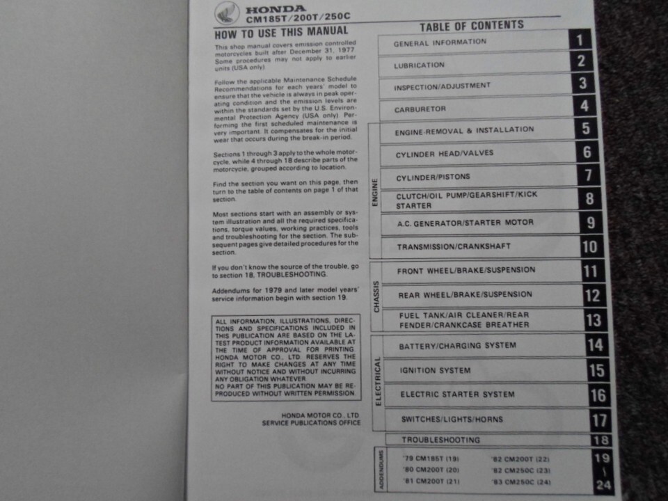 1978 1979 1980 1981 1982 1983 HONDA TWINSTAR CM185T CM200T CM250C Service Manual