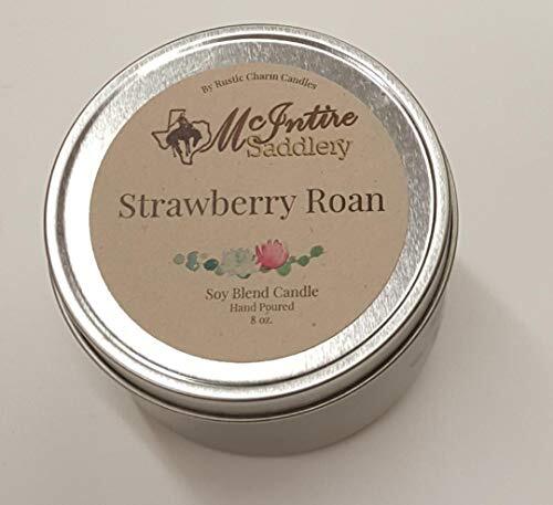 McIntire Saddlery 8 Ounce Hand Poured Soy Blend Candle in Tin- Strawberry Roan Scent