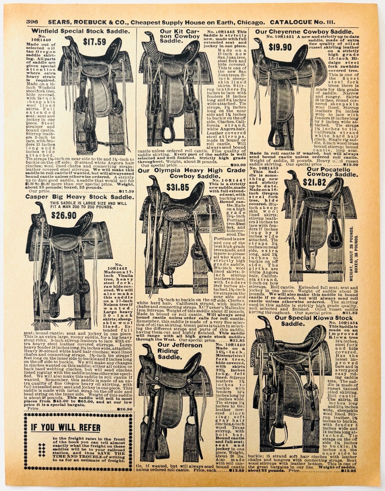 1901 Horse Saddles Reproduction Advertisement Sears Agriculture Riding DWW9A