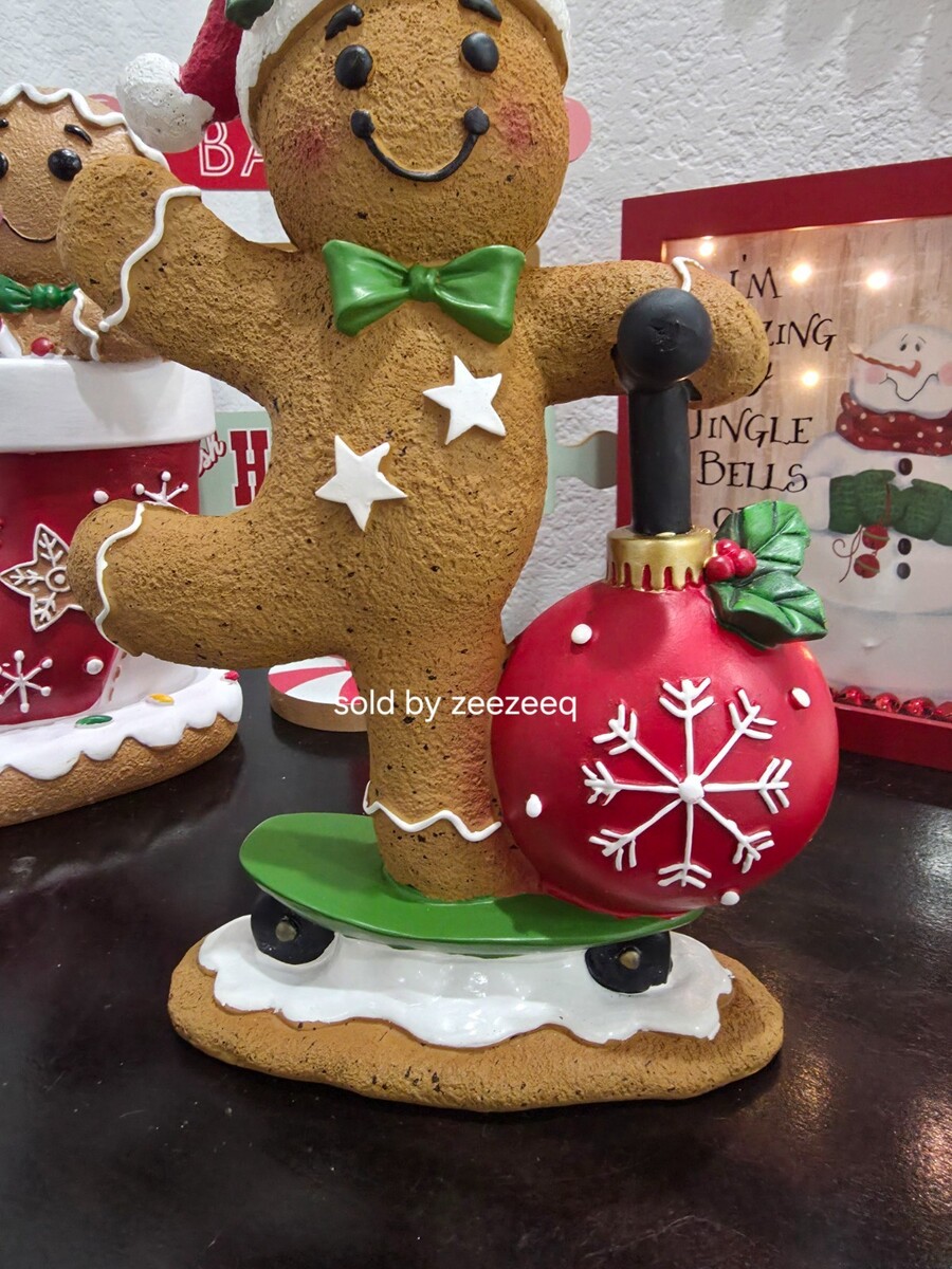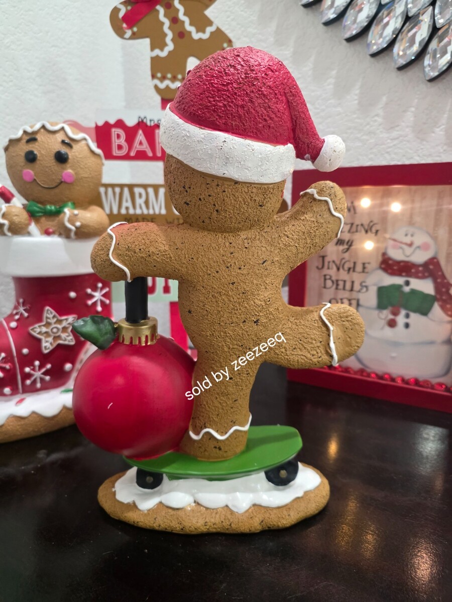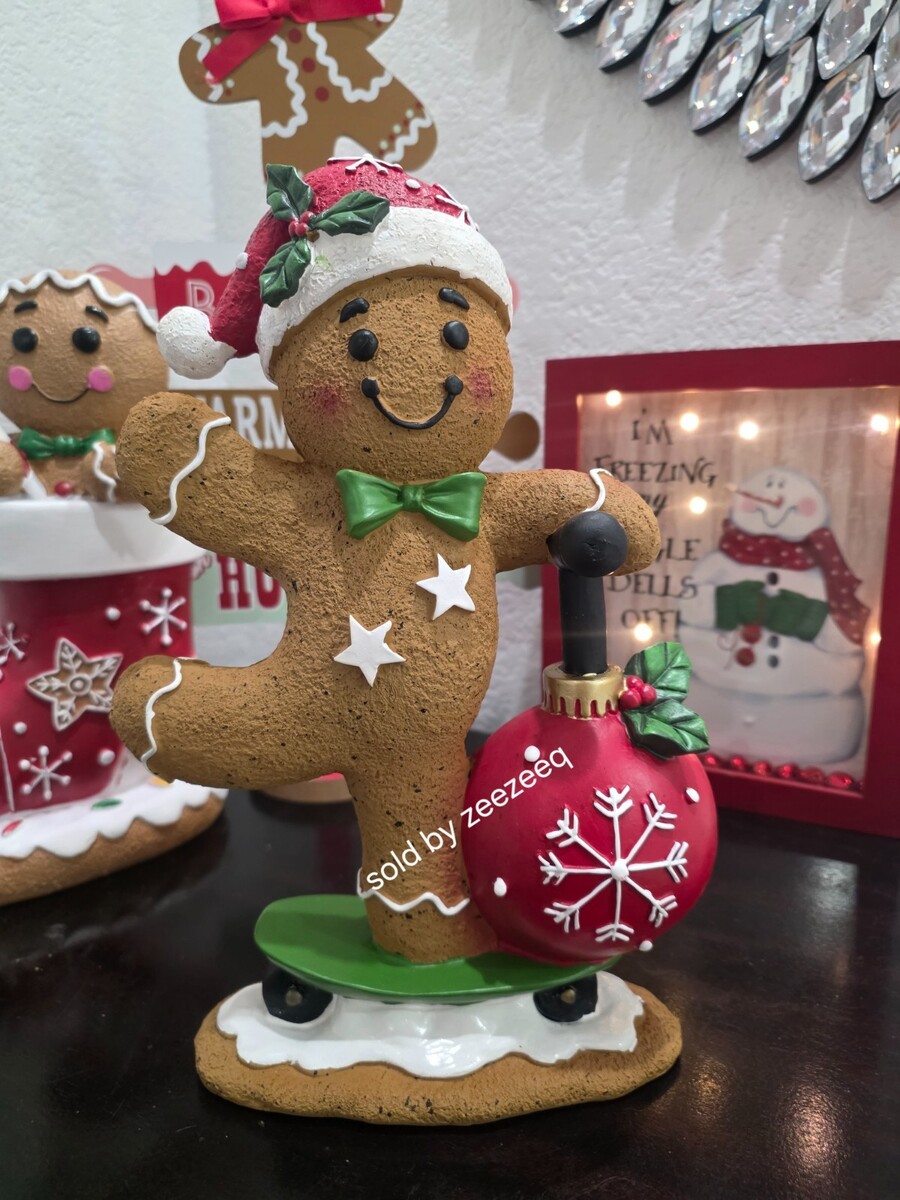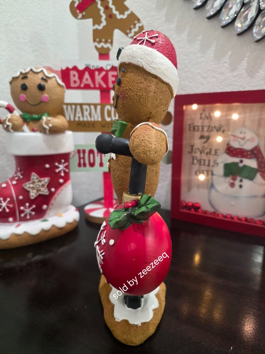 Up for sale we have this adorable gingerbread Boy for your Christmas Decor. He is riding a scooter made out of a ornament. He is sooo cute!! I also have a gingerbread girl. He is made of resin and stands approx 12" tall so he is a good size.