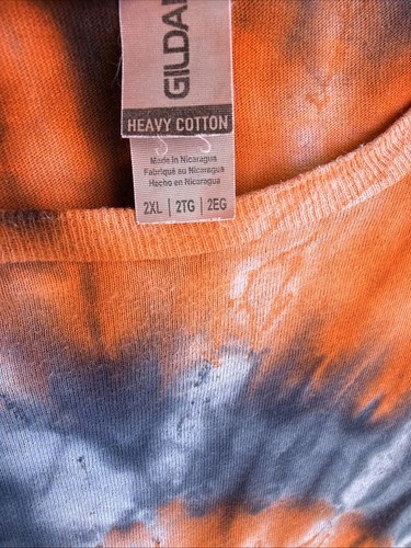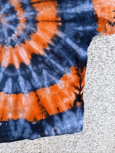 Gilden Men’s Navy Blue Orange Spiral Ice Tie Dye Short Sleeve Shirt Size 2XL