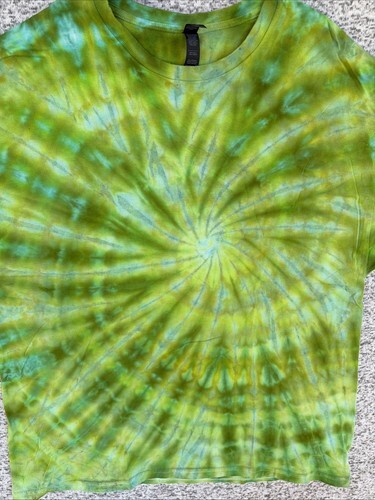 NEW Gilden Men?s Lime Green Blue Spiral Ice Tie Dye Short Sleeve Shirt Size 2XL
