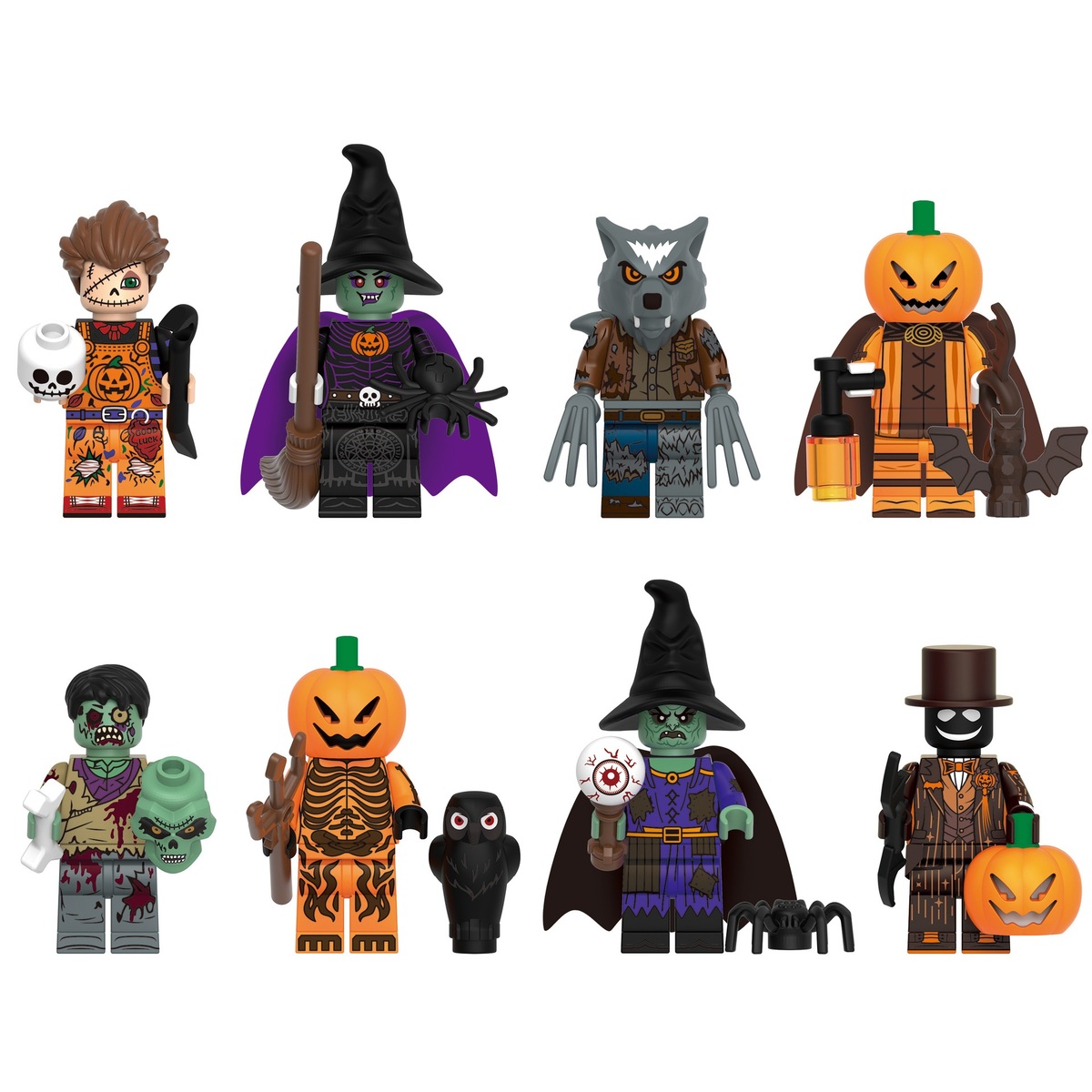 8pcs Halloween Scary Witch Hag Zombie Pumpkin Werewolf Minifigures Minifigs Toys
