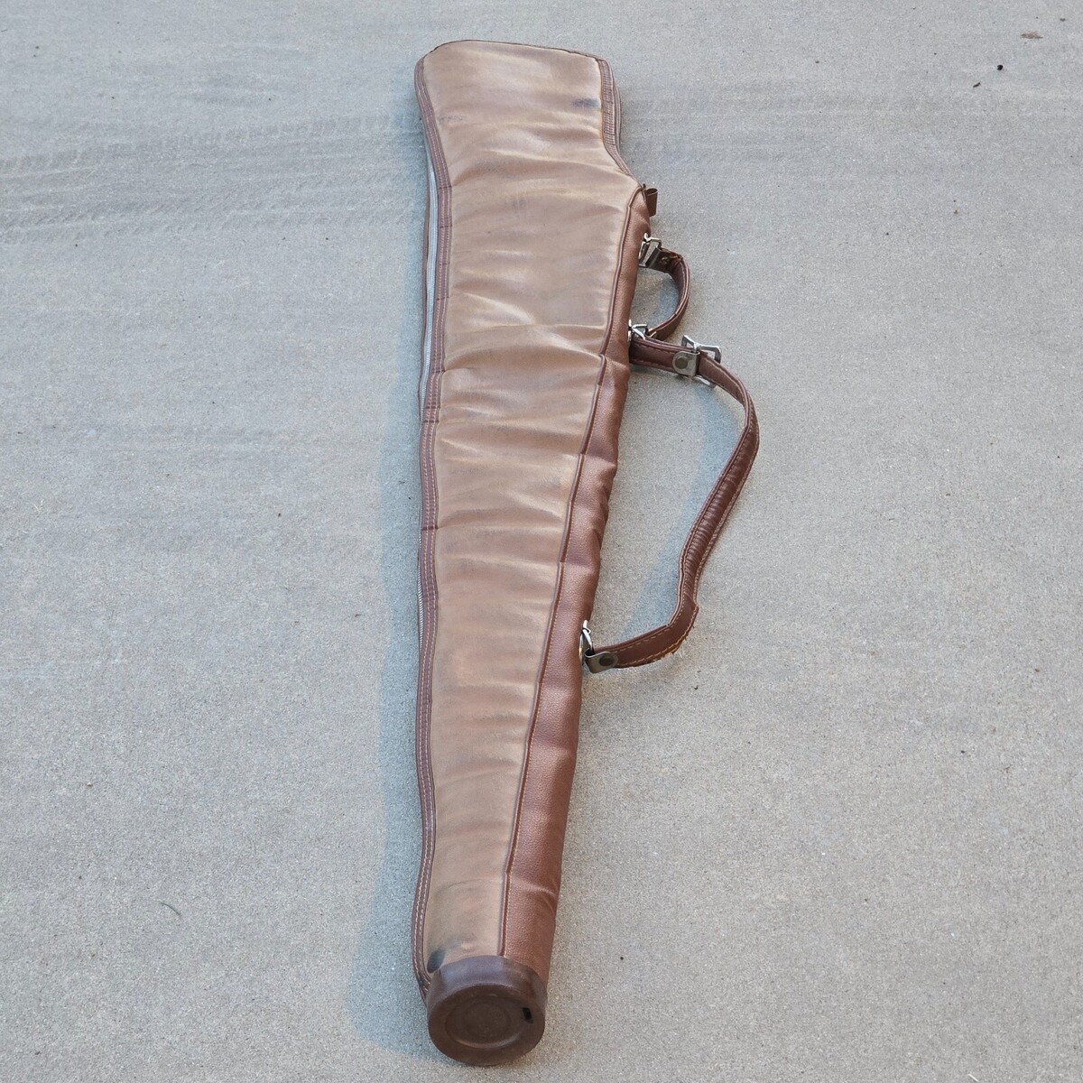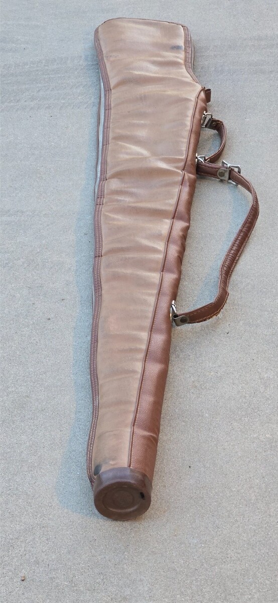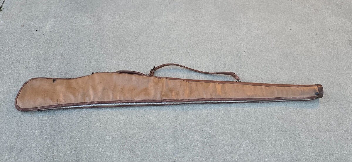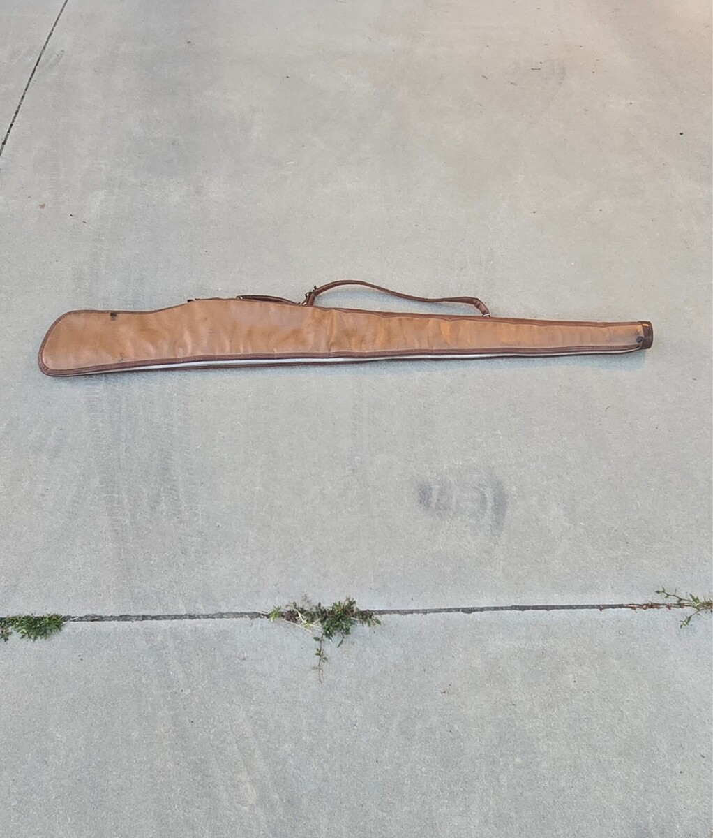 Vintage 60s / 70s RARE 53" JUMBO Brown Leather Padded Double Handle Full Zip Gun Rifle Shotgun Case - Measures approximately 53.5" full length, 6.5" Wide at most.