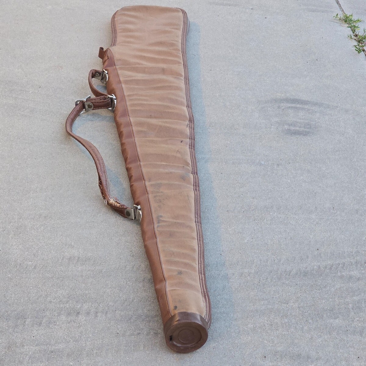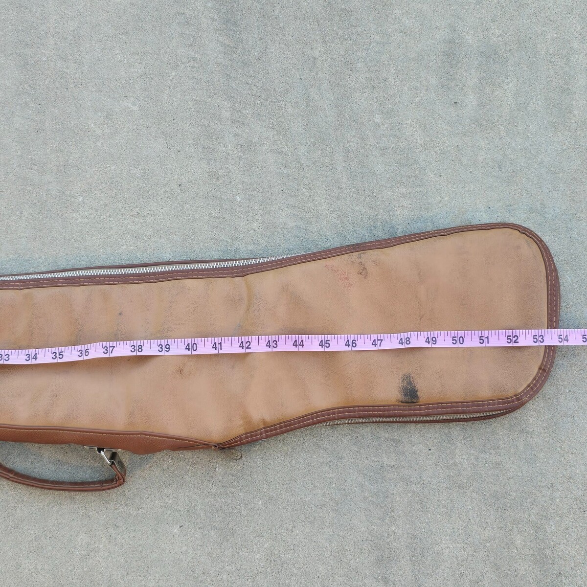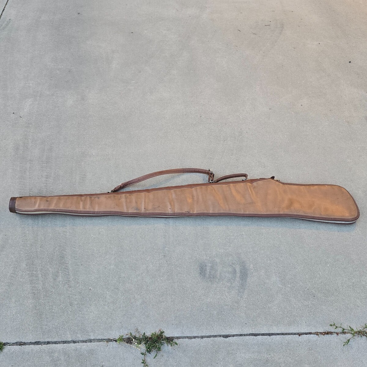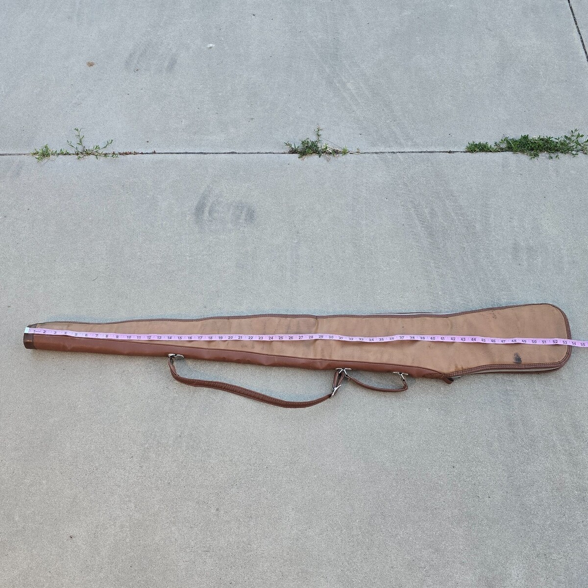 Vintage 60s / 70s RARE 53" JUMBO Brown Leather Padded Double Handle Full Zip Gun Rifle Shotgun Case - Measures approximately 53.5" full length, 6.5" Wide at most.