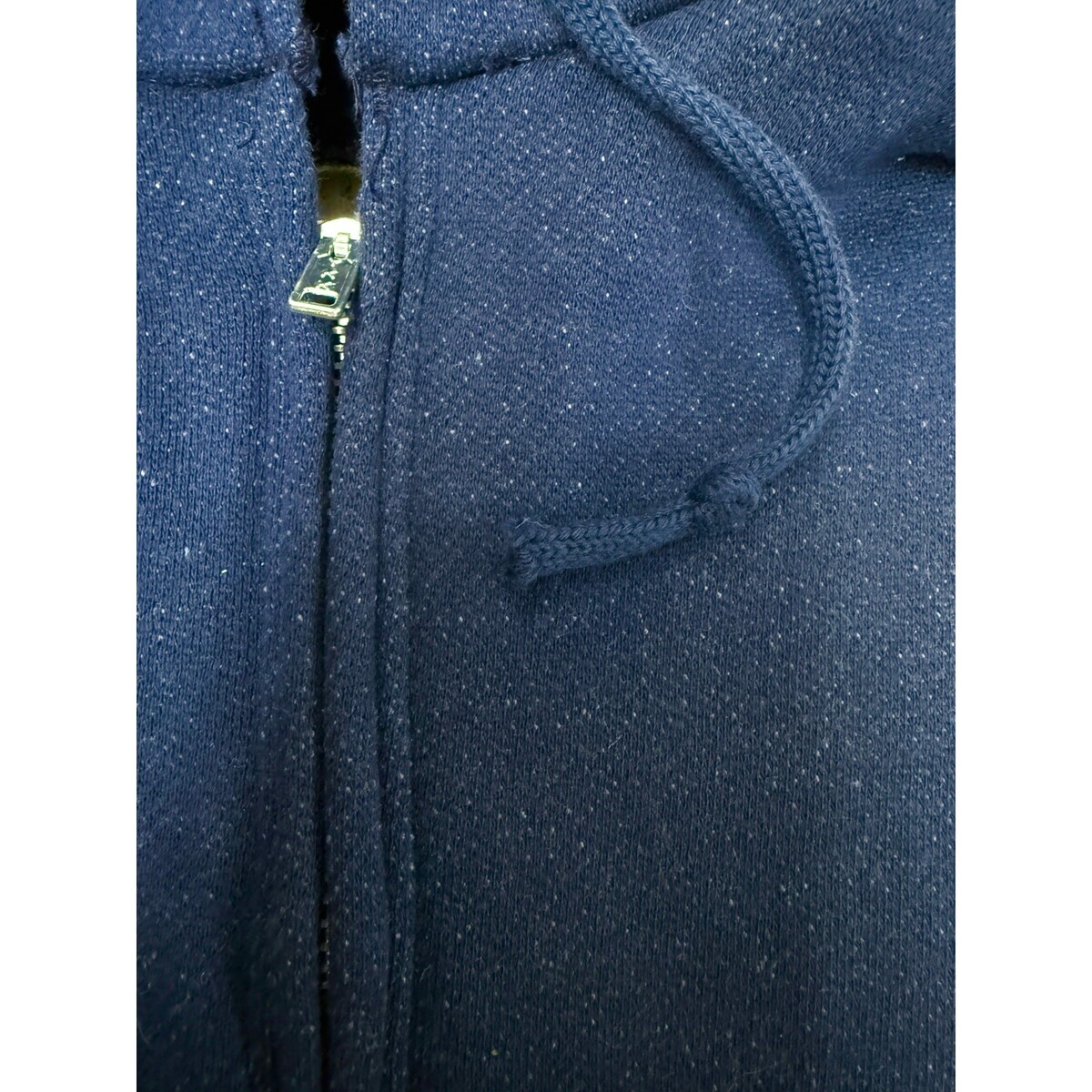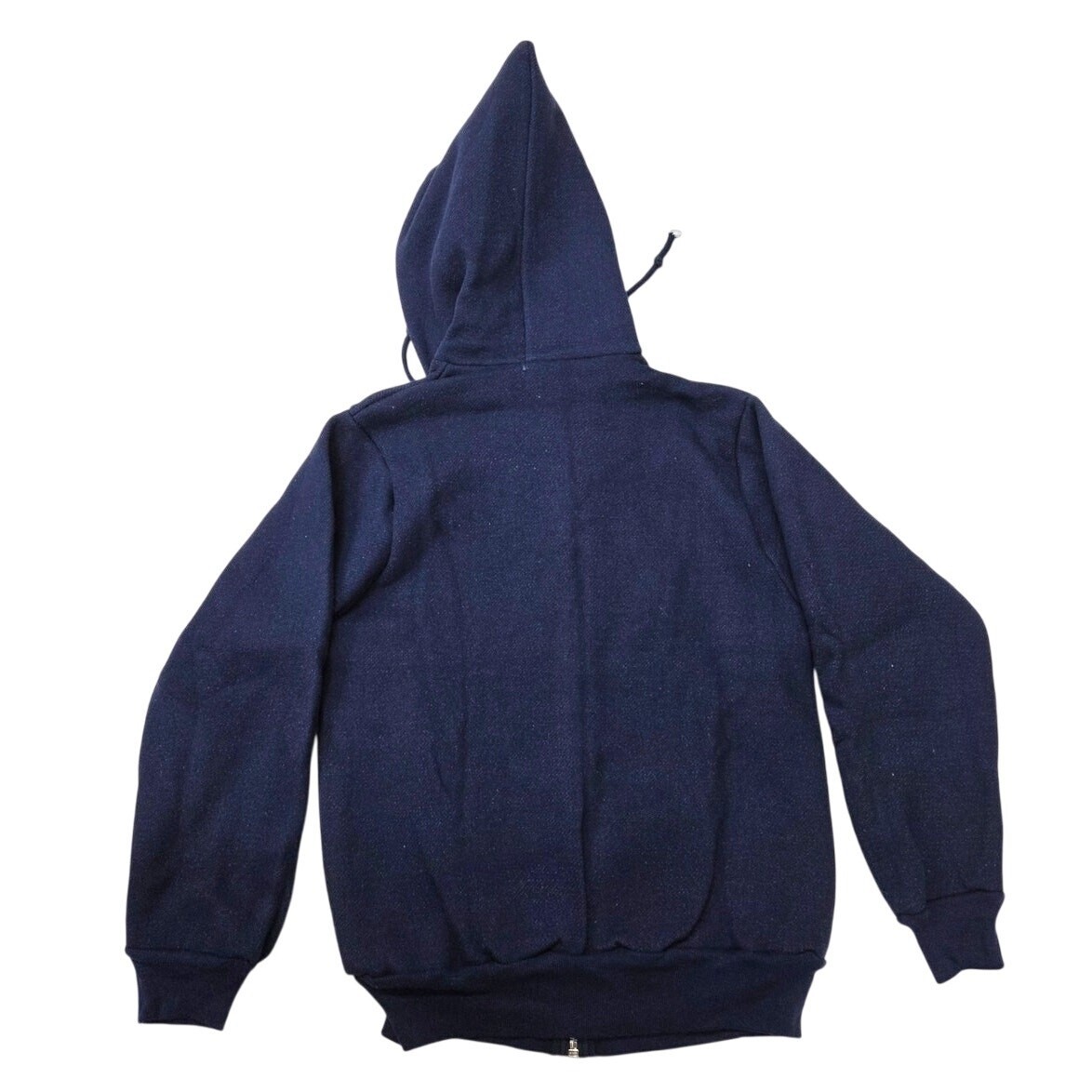 Vtg 50s-60s Deadstock Washington Mills Navy Blue Thermal Lined Hoodie with a kangaroo pocket and a stainless steel YKK zipper. SZ S 34-36. The tags are missing, but this is a deadstock item from an old store. It has a unique look, with white threads in the pattern, although it's not particularly textured. In great unworn shape!