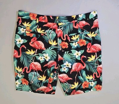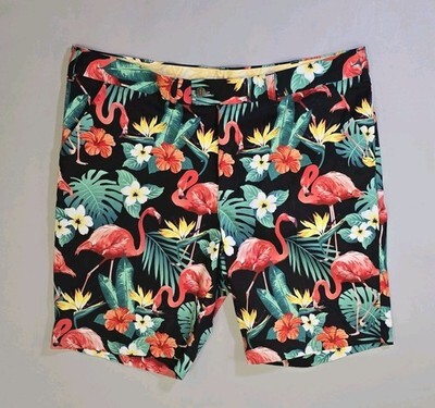 Loudmouth Golf Shorts Mens Sz 40 AOP Pink Flamingo Tropical Black Background