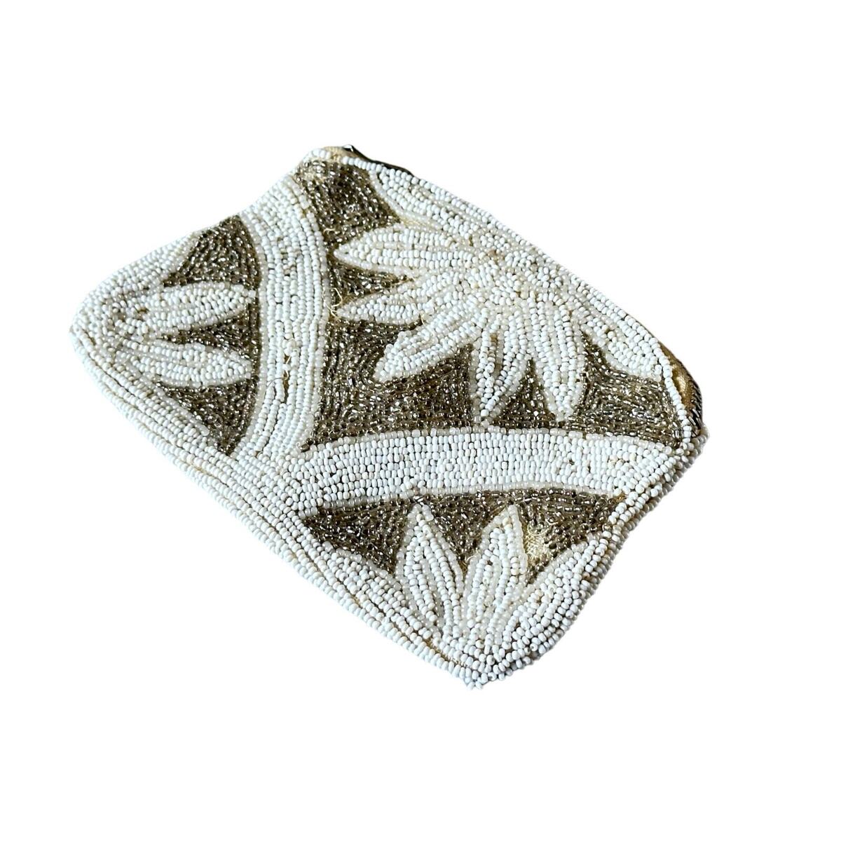 Retro vtg Purse Small Seed Bead Clutch Bag Deco 1930S Czechoslovakia White