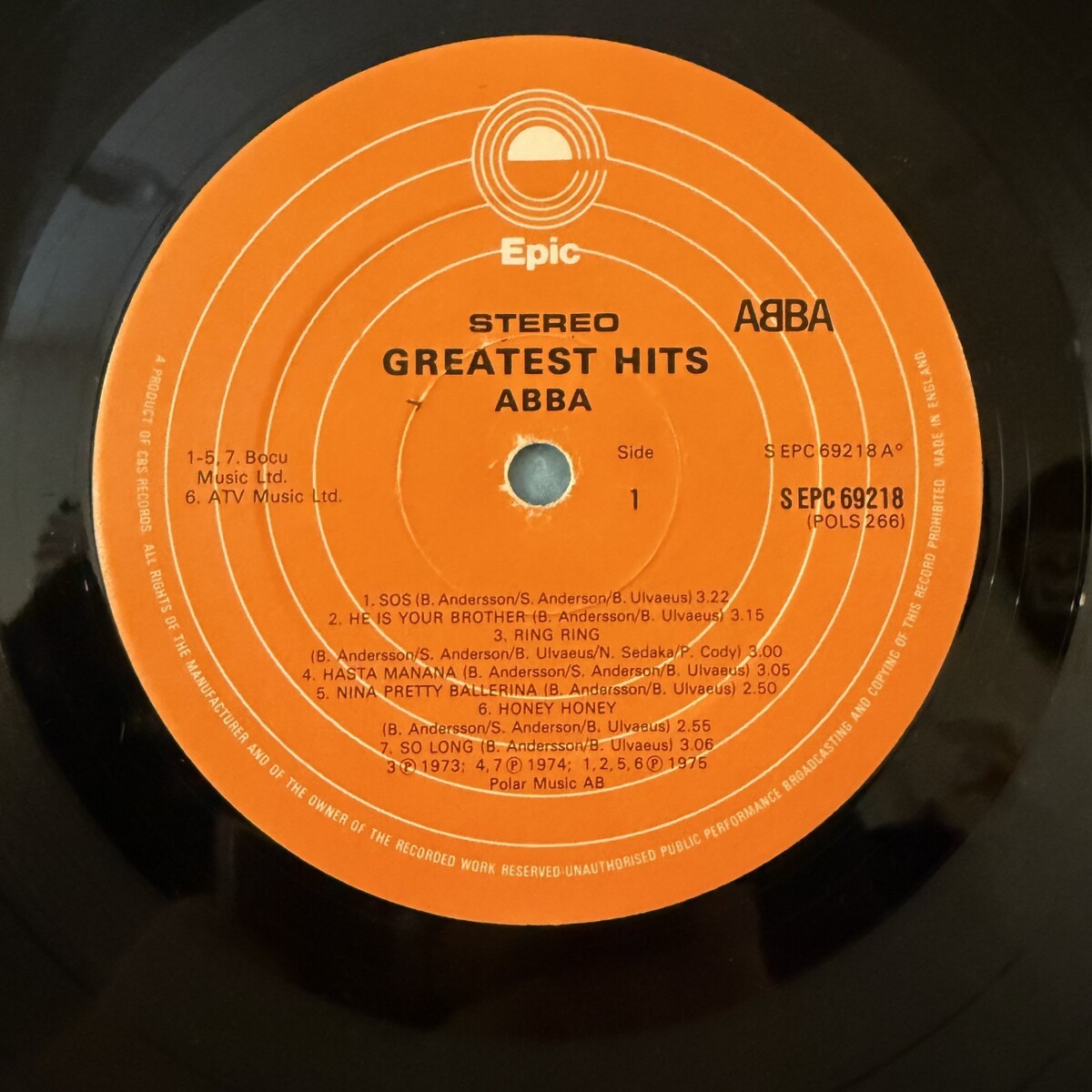 ABBA Greatest Hits Vinyl LP Epic EPC 69218 VG+ UK Import Fernando Mamma Mia SOS