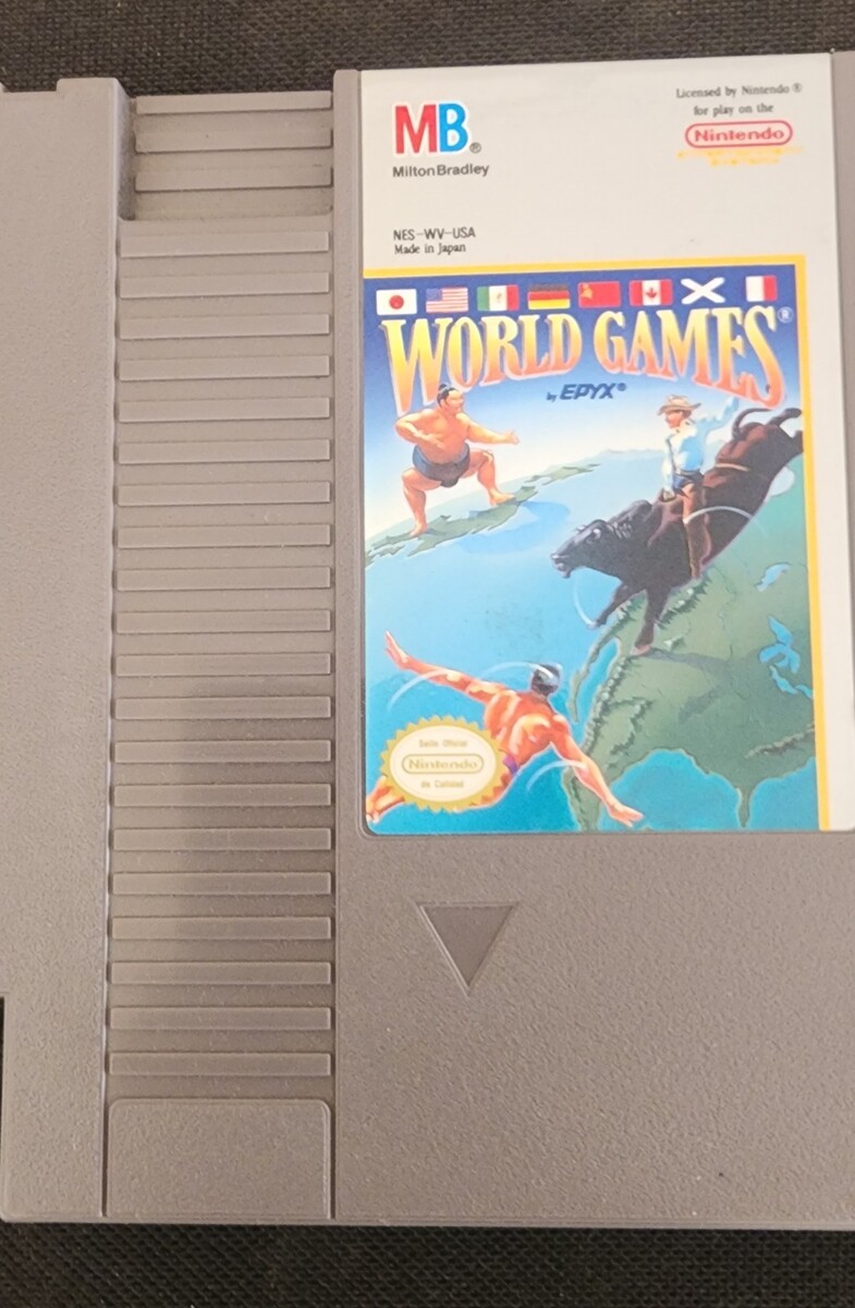 World Games (Nintendo Entertainment System, 1989) This item is in Great Shape and in Working Condition. This item comes with Cartridge and Game Sleeve. This item does not include a Game Manual. This item would be a Great Gift or the Perfect Addition to any Collection.
