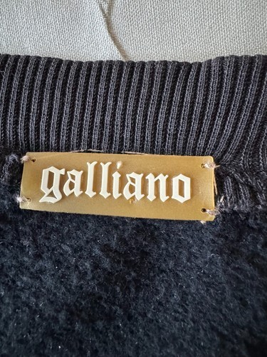 back panel has "Galliano" embroidered across in a fuzzy yarn