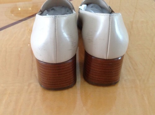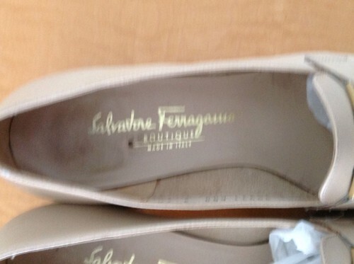 These beige Salvatore Ferragamo with gold buckle detail pumps are in excellent used condition with no signs of damage of any kind aside from a tiny pinhole on the right inside of the shoe (this is imperceptible to the naked eye).