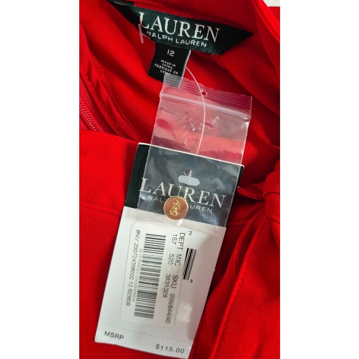NWT Lauren Ralph Lauren 100% Polyester Cherry Red Blouse Zip Back Tie Neck Sz 12 added to cart.