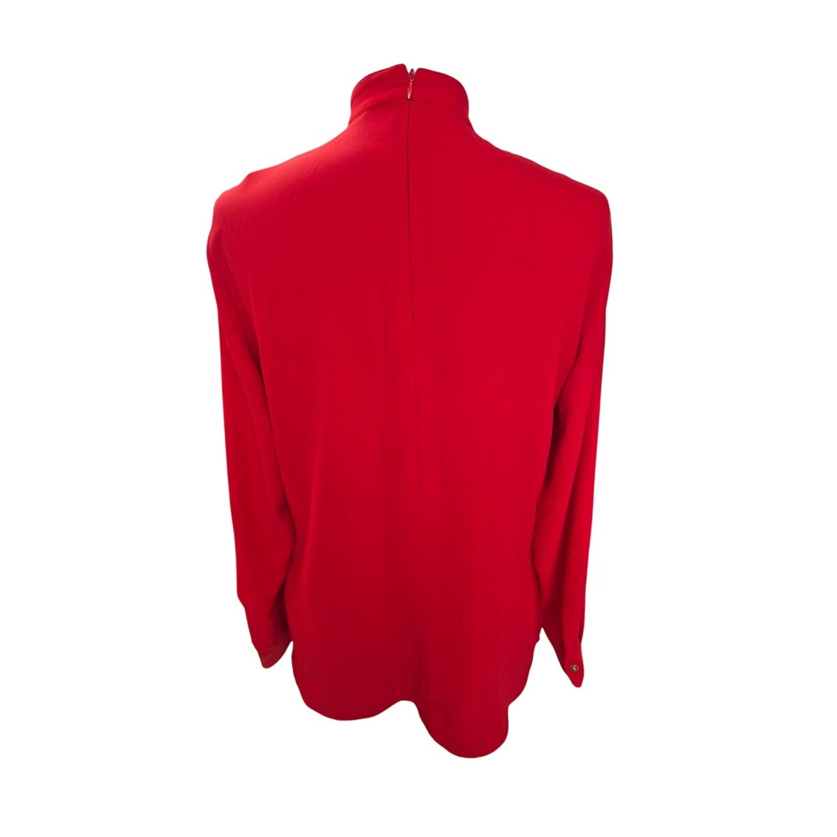 NWT Lauren Ralph Lauren 100% Polyester Cherry Red Blouse Zip Back Tie Neck Sz 12