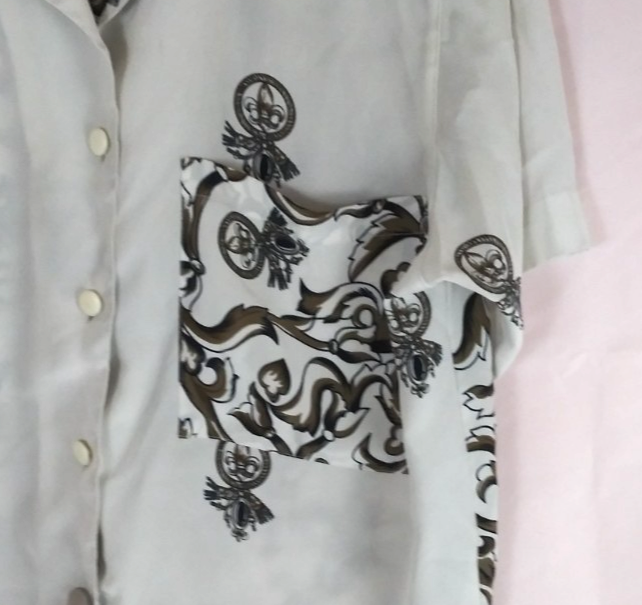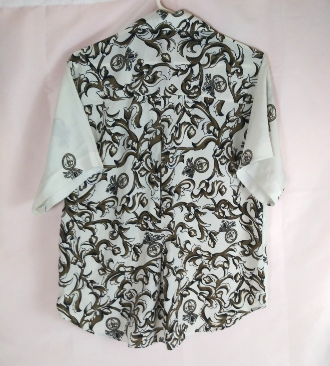 Vintage Nicola Women's Collared Floral Roped Fleur De Lis Design Blouse Small