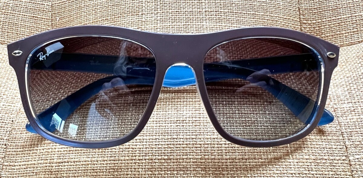 Ray Ban RB 4226 6189/8G 56/16- sunglasses HTF style taupe matte brown with bright blue inside, in excellent pre-owned condition. Made in Italy.