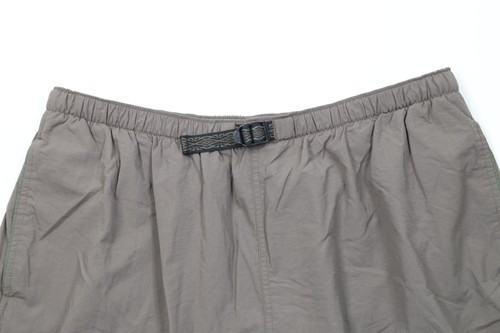 Sun faded, discolored. Waist, inner lining discolored. Color faded. Belt distressed