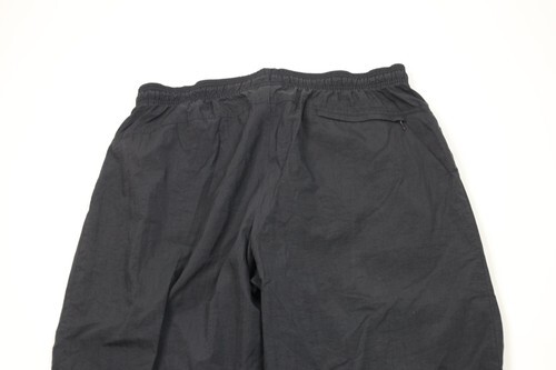 Cuffs stretched/ripped. Waist stretched. Blemishes front, back of both legs, inner legs. String distressed. Color faded