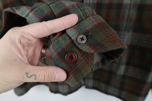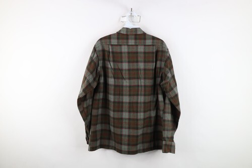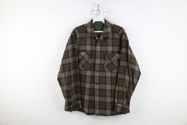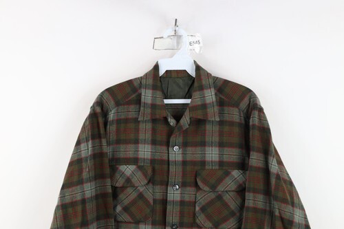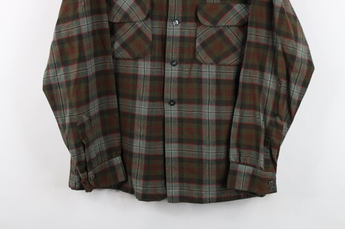Vintage 50s Rockabilly Mens M Looped Collar Wool Board Button Shirt Plaid USA