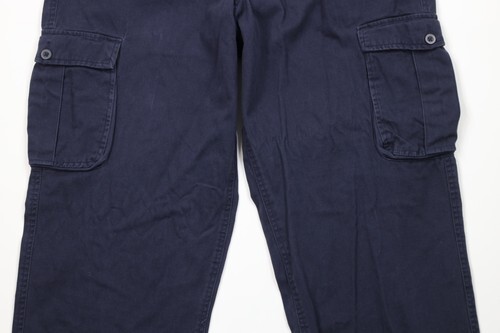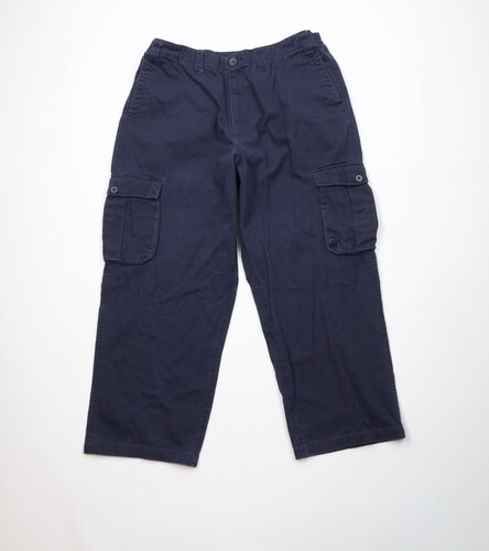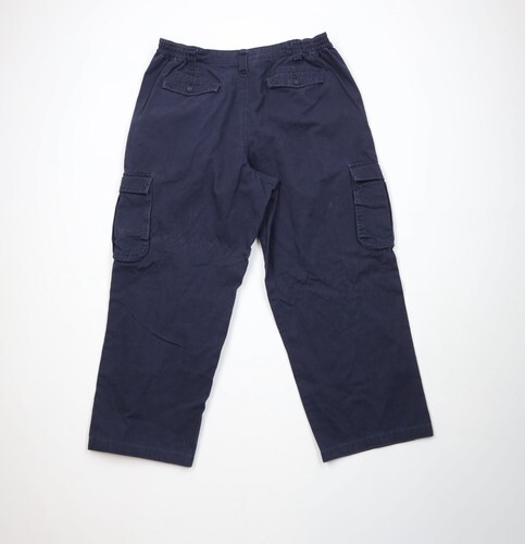 Vtg 90s Y2K Streetwear Mens 36x27 Faded Wide Leg Cargo Pants Navy Blue Cotton