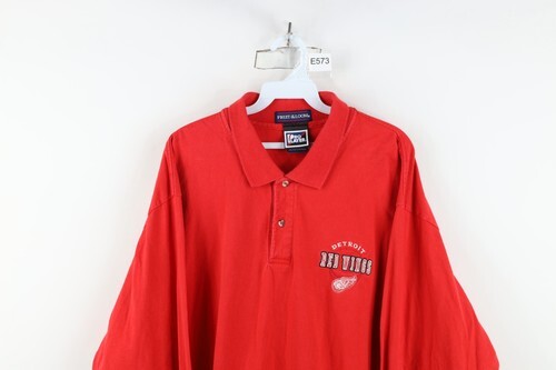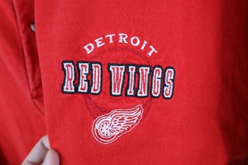Vintage 90s Mens XL Faded Heavyweight Detroit Red Wings Hockey Long Sleeve Polo added to cart.