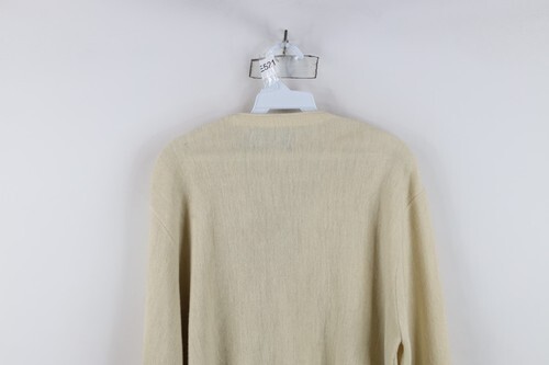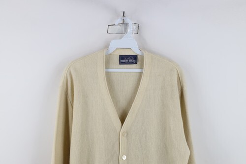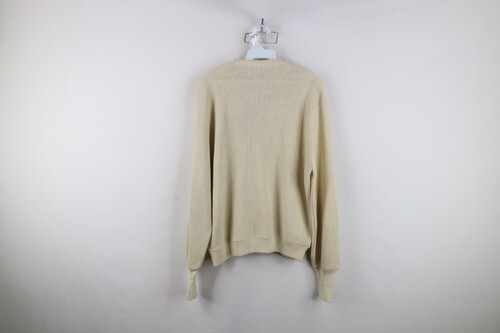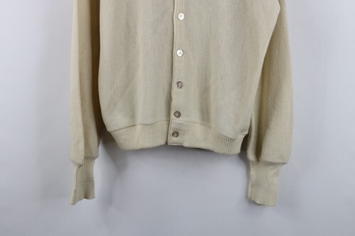 Vintage 70s Streetwear Mens Medium Blank Knit Button Cardigan Sweater Beige USA