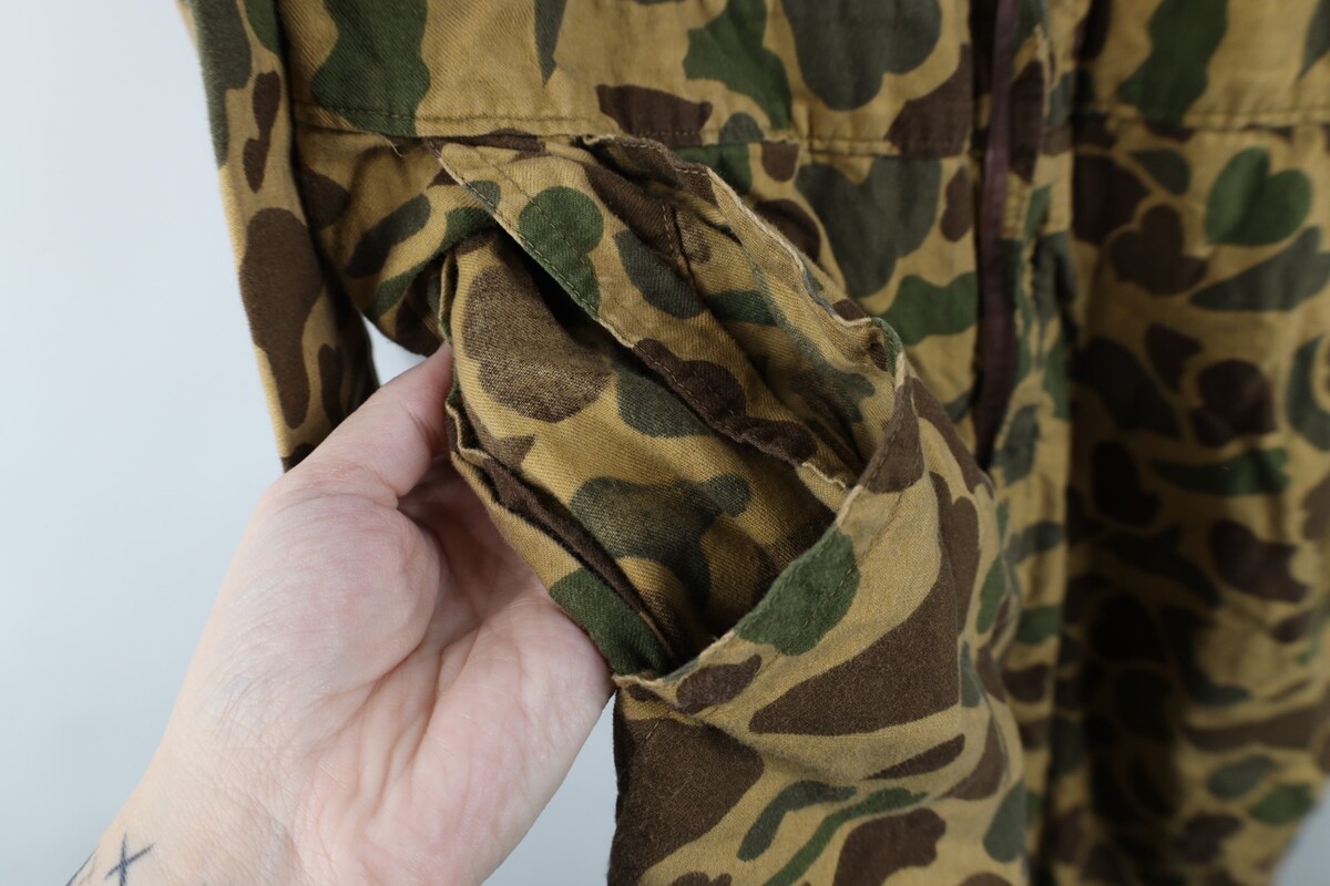 Vintage 70s Streetwear Mens Small Faded Frogskin Camouflage Coveralls Bibs USA