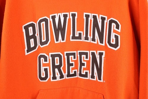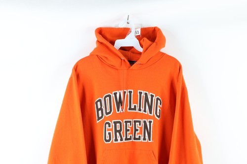 Vtg Champion Mens Small Spell Out Bowling Green State University Hoodie Orange