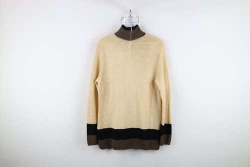 Vtg 60s 70s Mid Century Modern MCM Womens M Wool Knit Color Block Sweater USA