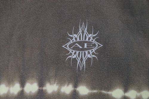 Blemish front top. Graphics distressed. Pilled. Color fade. Has discoloring