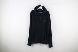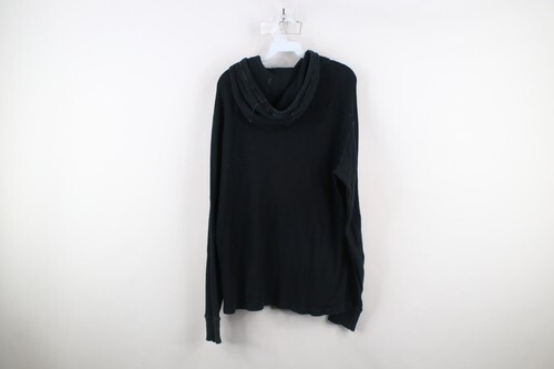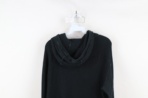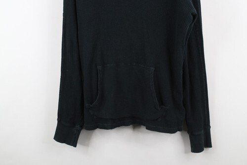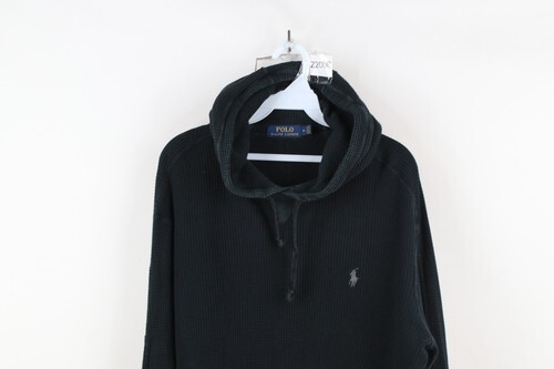 Vtg Ralph Lauren Mens Medium Faded Thermal Waffle Knit Hoodie Sweatshirt Black
