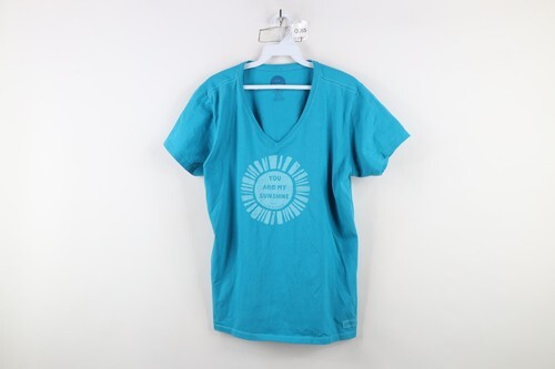 Life Is Good Womens Large Spell Out You Are My Sunshine V-Neck T-Shirt Crusher