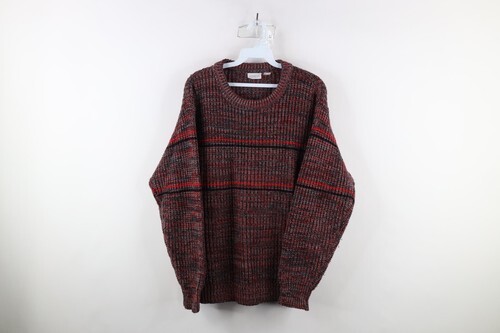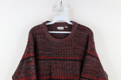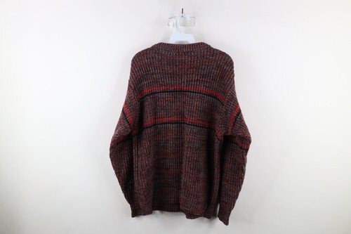 Vintage 70s Streetwear Mens Small Striped Chunky Ribbed Knit Crewneck Sweater