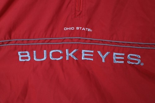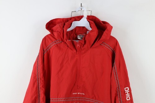 Vtg 90s Mens XL Distressed Ohio State University Half Zip Hooded Pullover Jacket