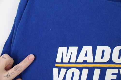 Vintage Adidas Mens Large Faded Spell Out Madonna University Volleyball T-Shirt
