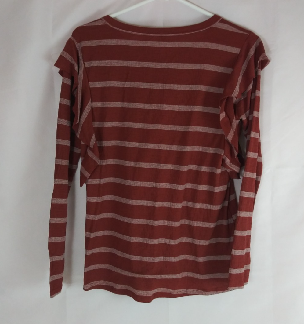 MTS Women's Red Striped Shirt With Ruffled Shoulders Size Small USA