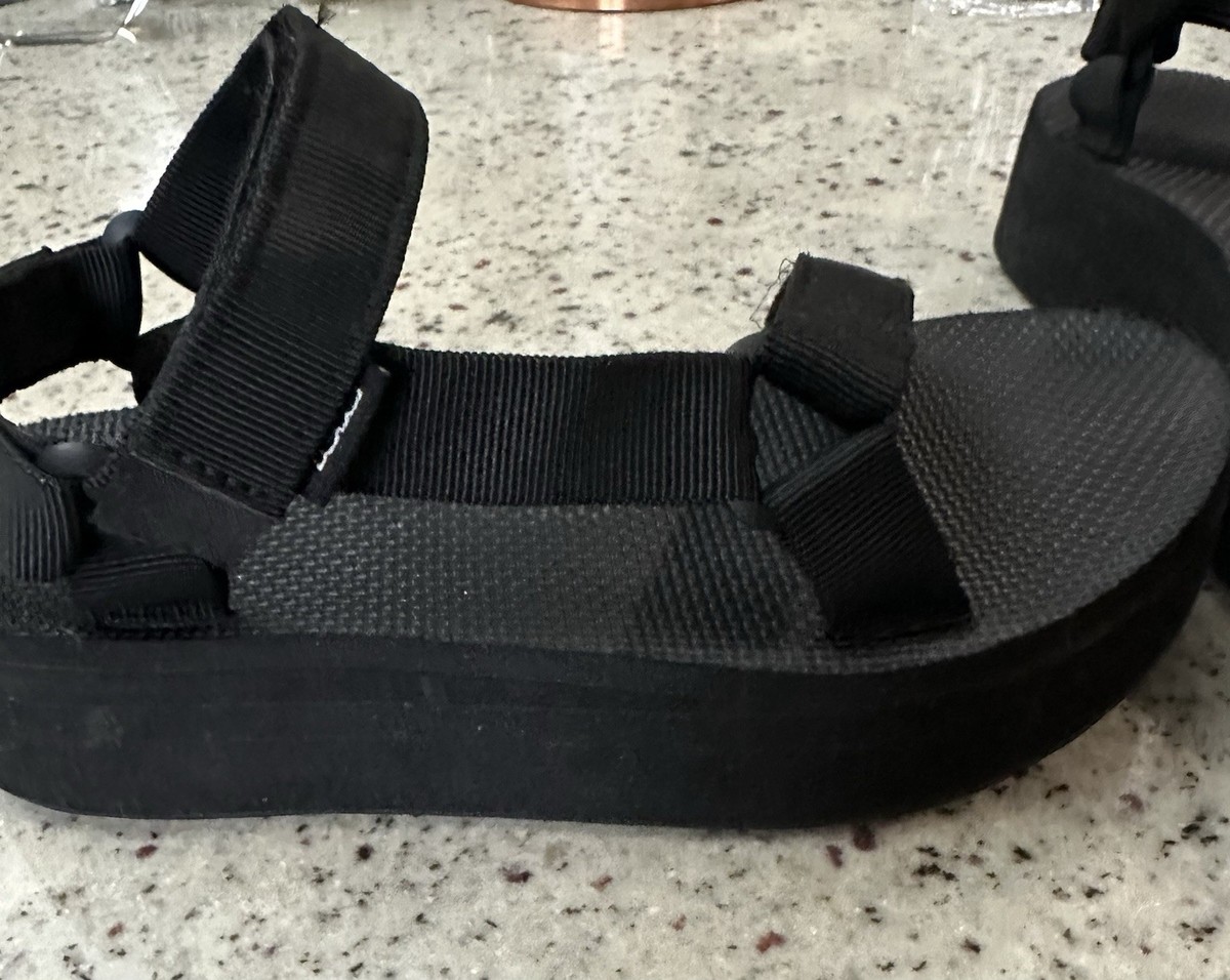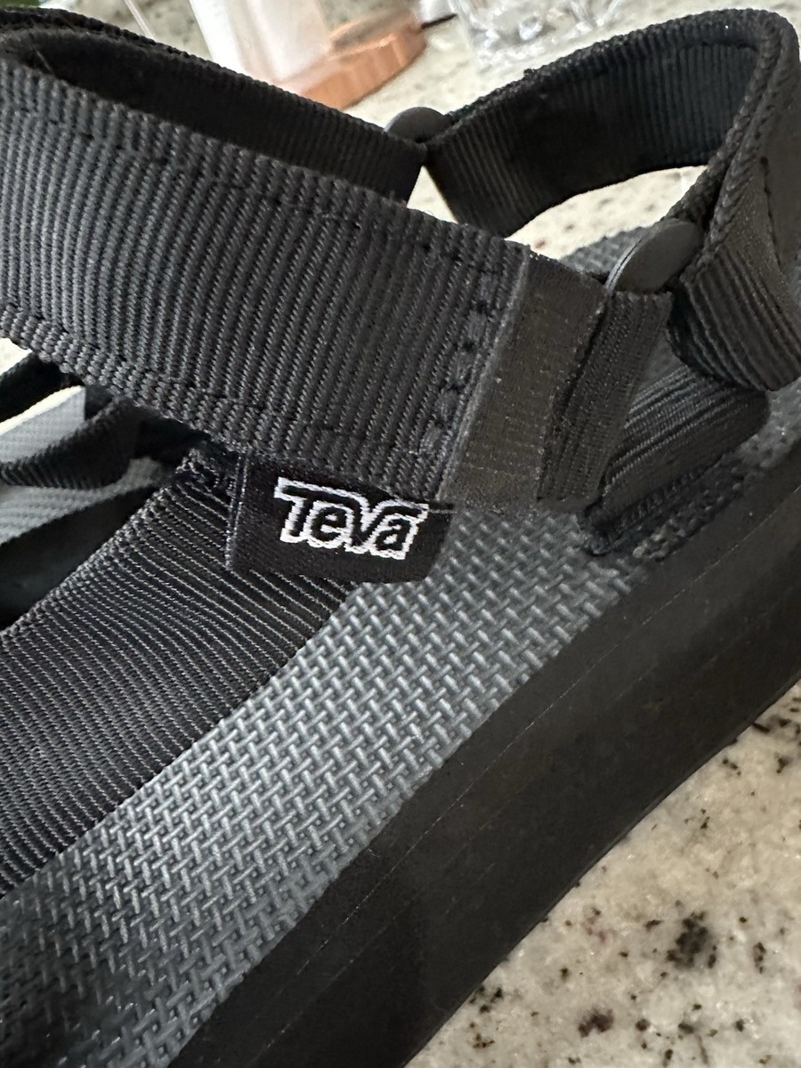 Teva Flatform Universal 1008844 BLK Sandal Women 7 Black Adjustable Strap