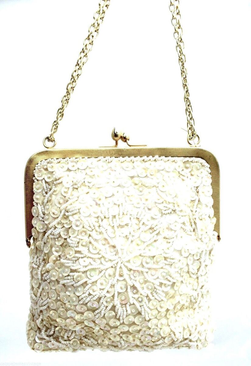 Vintage Purse Ivory Sequins Beaded Evening and 46 similar items