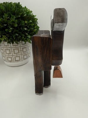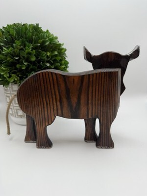 Add rustic charm to your home with this handcrafted wooden bull figurine, featuring silver-painted horns and hooves, a rope tail, and a copper-tone bell. Its warm stained finish and simple hand-carved details give it a cozy farmhouse appeal ? perfect for a country kitchen, shelf display, or cabin decor.
