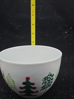 JENNY BOWERS Ceramic Christmas Medium Bowl Nesting Trees Gifts Cereal Ice Cream