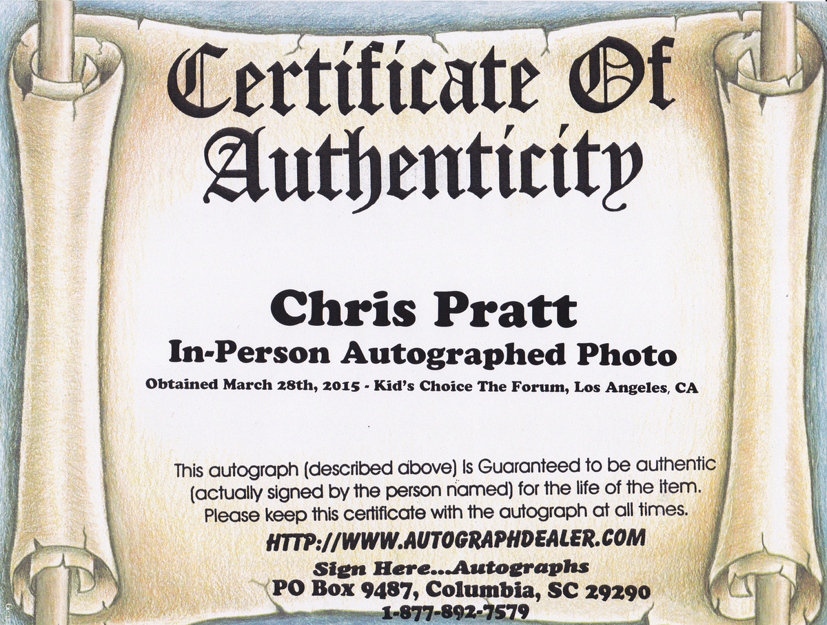 Chris Pratt Authentic In-Person autographed 8x10 photo with COA
