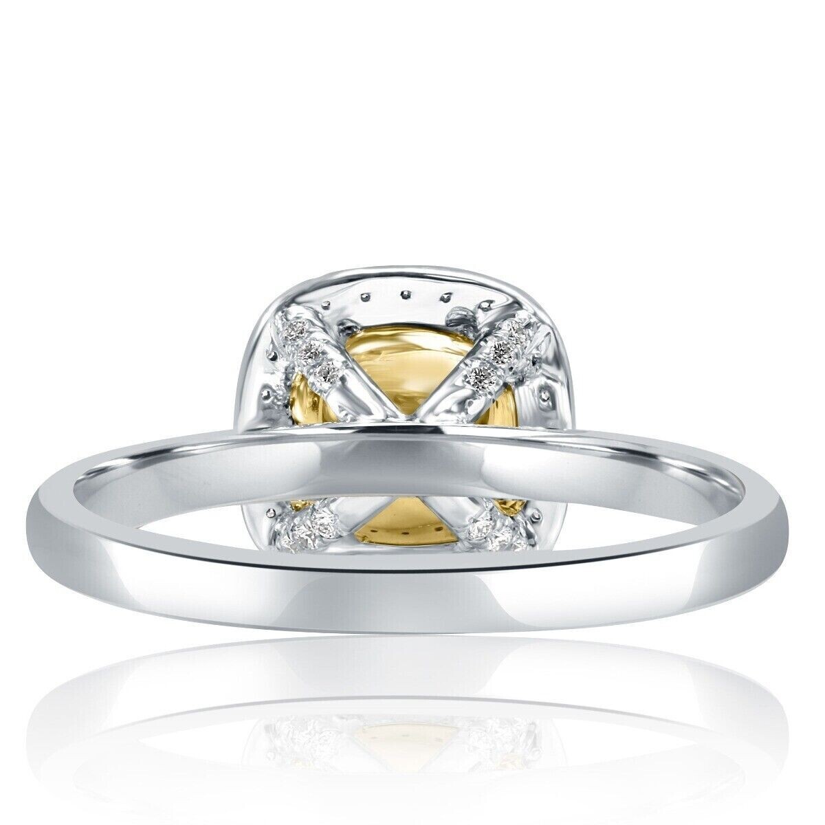 GIA 1.20 TCW Cushion Light Yellow Halo Diamond Engagement Ring 14k White Gold