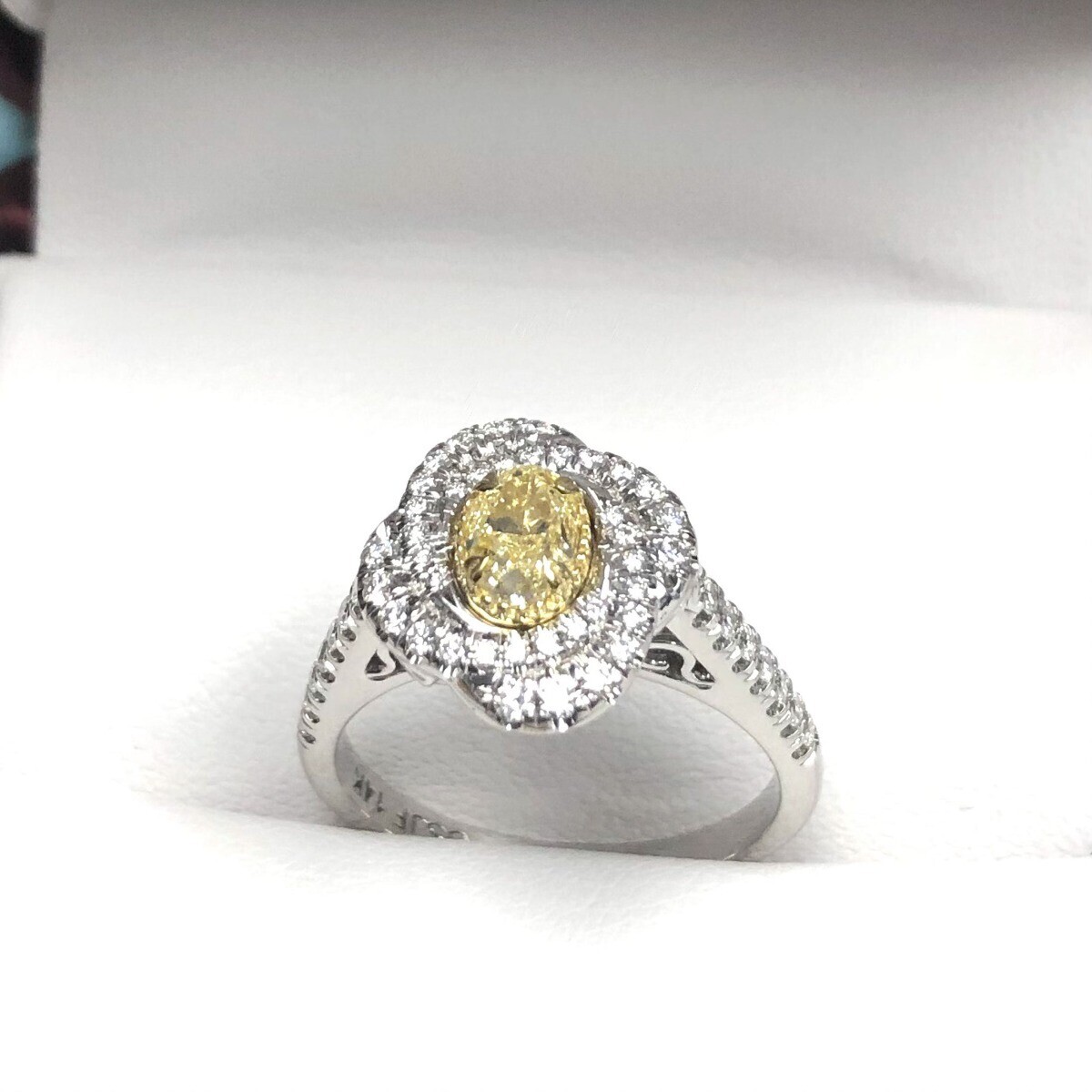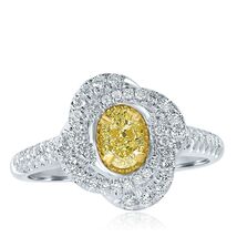 1.06 CT Natural Fancy Yellow Oval Diamond Engagement Ring 14k White Gold