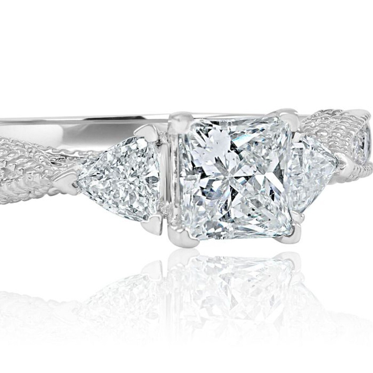 1 Carat Princess Cut Diamond Engagement Ring Milgrain Edged 14k White Gold